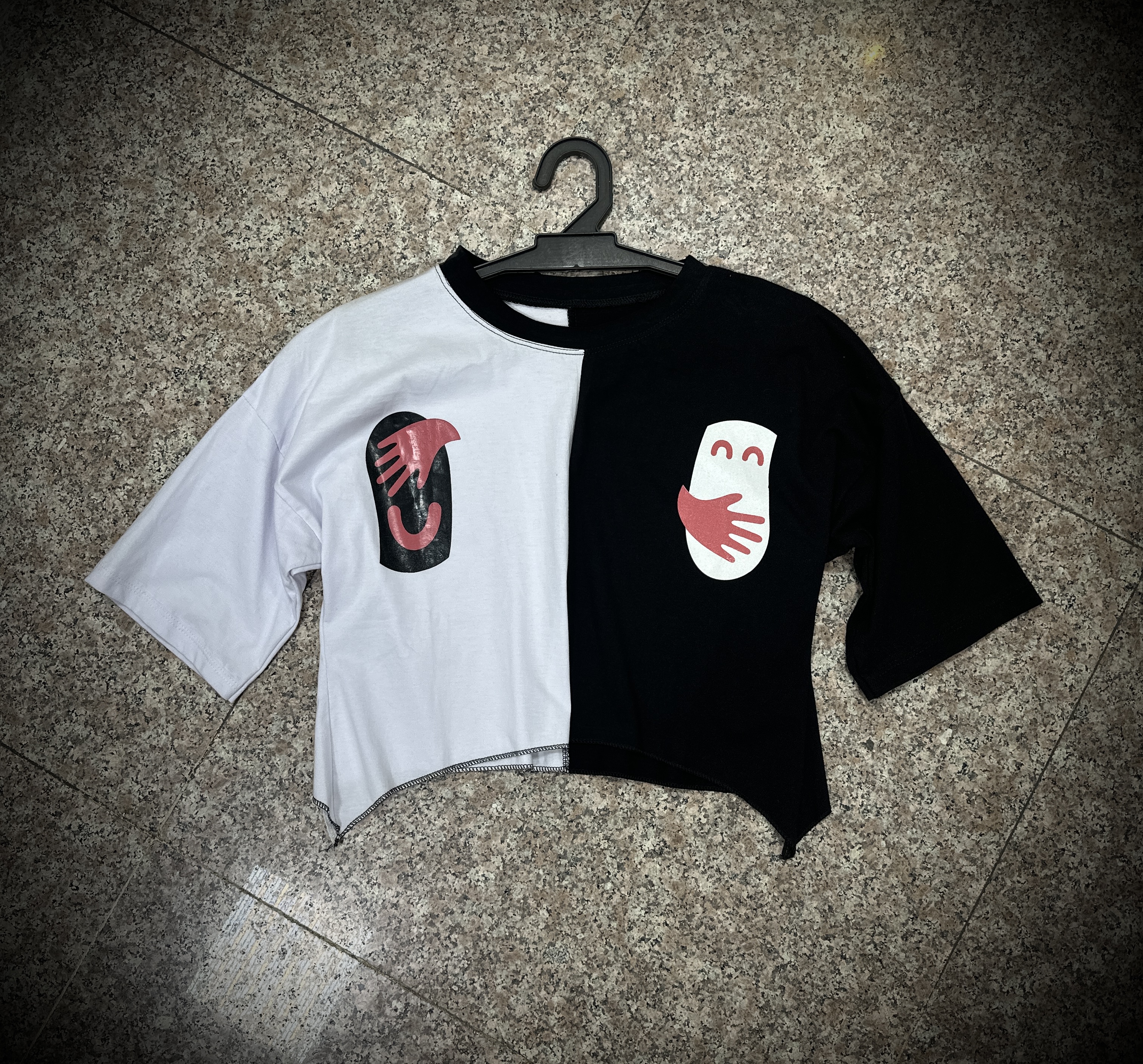 تیشرت کراپ زنانه سفید مشکی
