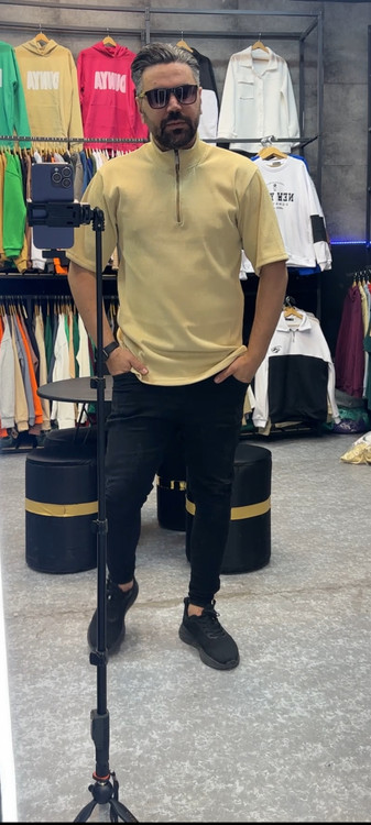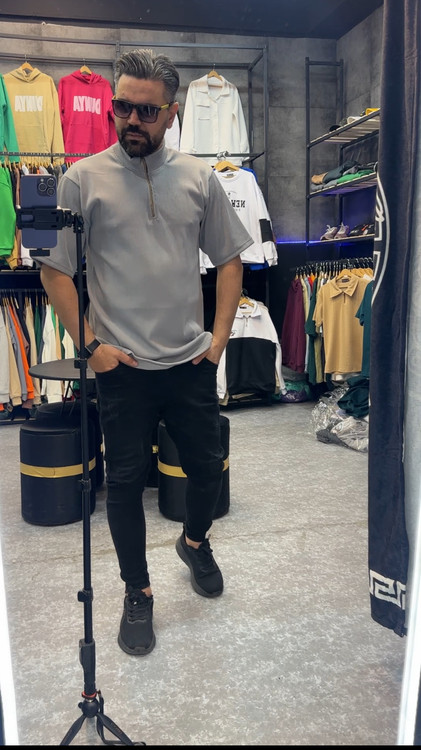 تیشرت کبریتی یقه زیپ دار پارچه وارداتی مردانه گرم بالا