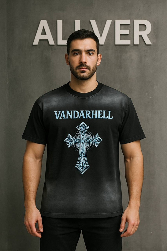 تیشرت اندامی مردانه تک رنگ مشکی طرح سلیب