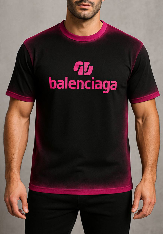 تیشرت اندامی مردانه تک رنگ مشکی طرح بالنسیاگا صورتی