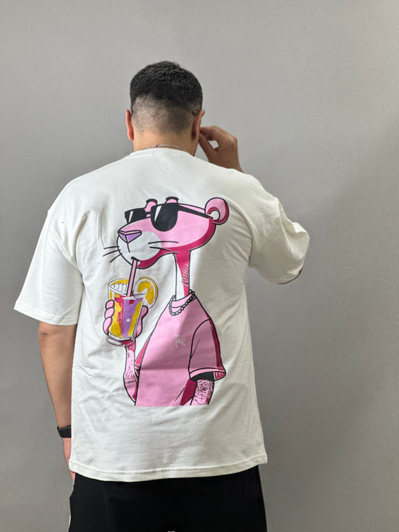 تیشرت دونخ مردانه طرح پلنگ صورتی